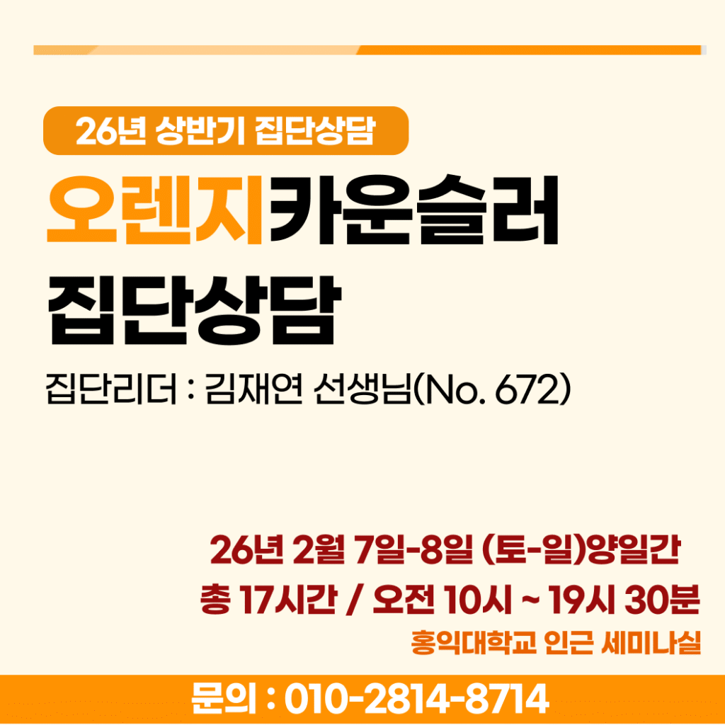 [마감][집단상담] 26년 상반기 2/7(토)&2/8(일) 10시-19시30분 / 집단리더 김재연 수퍼바이저